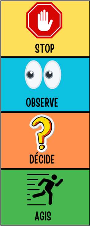 La méthode SODA, mise en œuvre cette année dans certaines classes, complète l’approche d’autorégulation en mettant l’accent sur la réflexion et la prise de décision consciente. Cette stratégie aide les élèves à ralentir avant d’agir impulsivement, à considérer les conséquences de leurs gestes et à faire preuve d’autodiscipline.