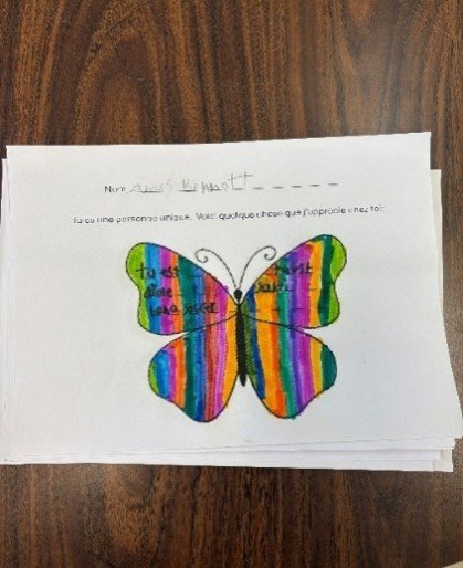 Des papillons ont été préparés par des élèves de la 2e année à l’École catholique St-Michel de Temiskaming Shores pour l’autre classe de 2e en tant qu’acte de gentillesse dans le cadre du programme MindUP.