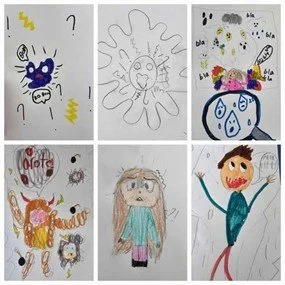 Dans le cadre du programme « Leçon sur le stress » on a demandé aux élèves de dessiner comment ils ressentent le stress dans leur corps.